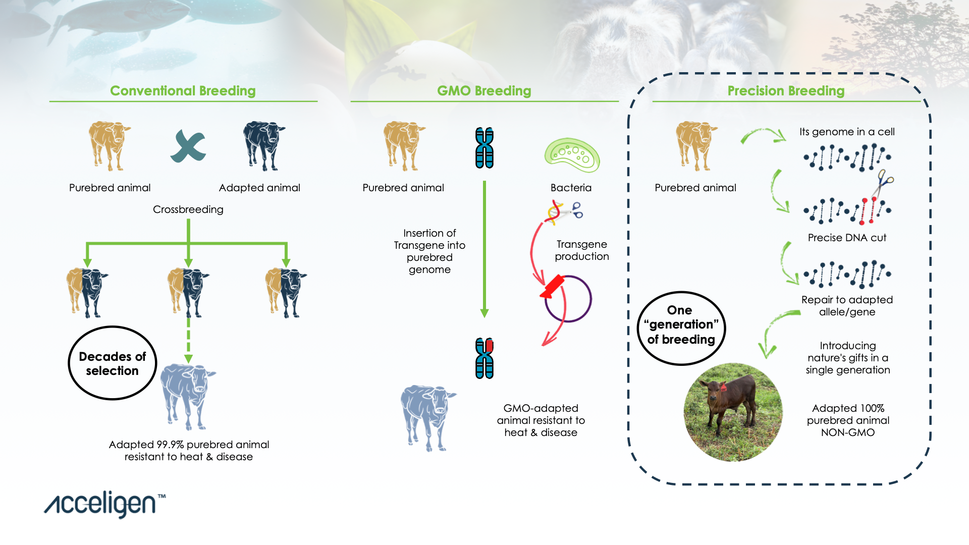 HOW IS PRECISION BREEDING DIFFERENT FROM CONVENTIONAL BREEDING OR GMO?